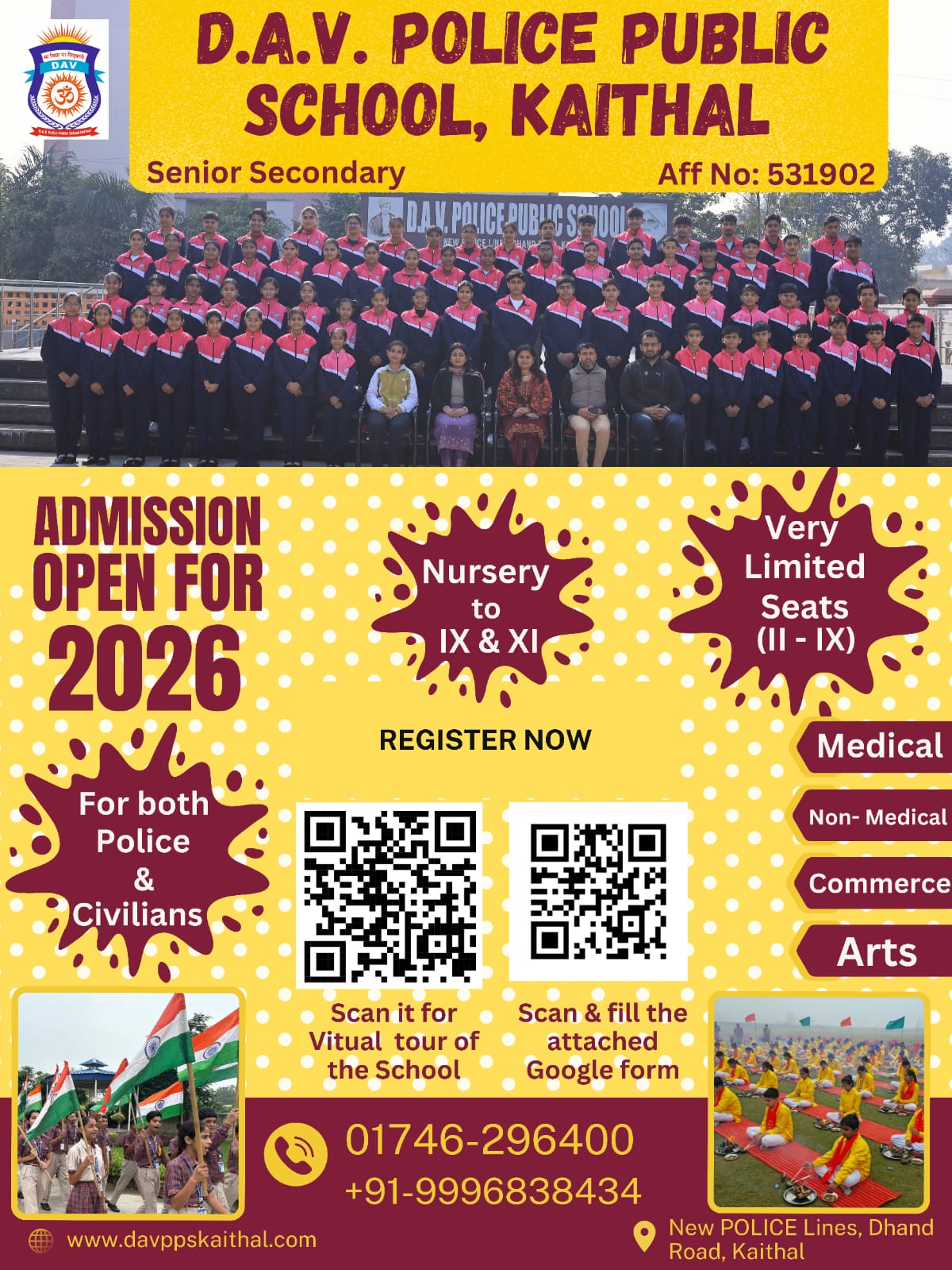 DAV Police Public School, Kaithal Police Line, Dhand Road, Kaithal, Haryana - 136027 Phone: 09996838434 E-Mail Id: [email protected] Website: www.davppskaithal.com Affiliated from CBSE.