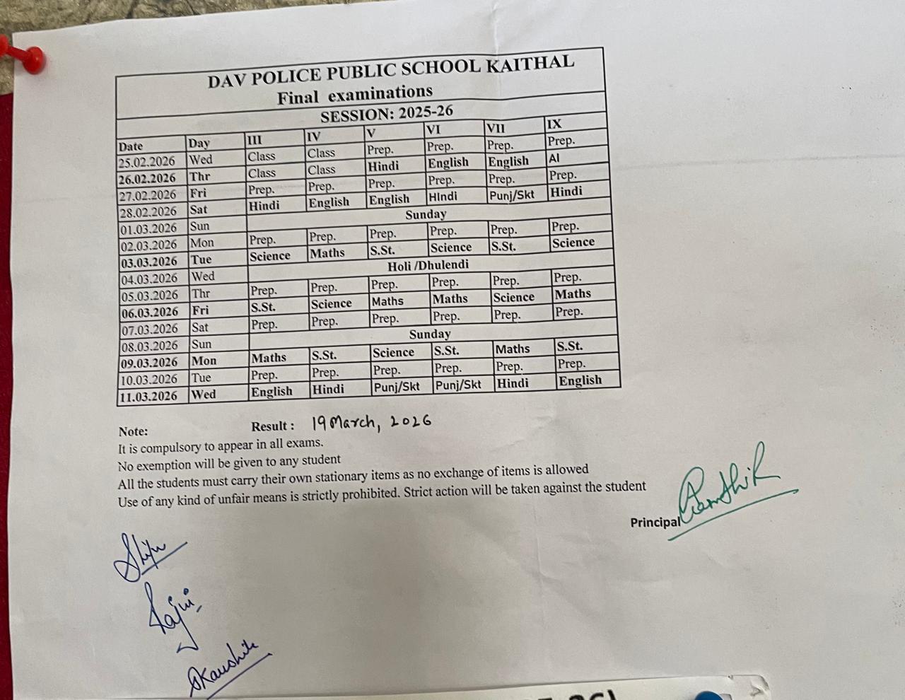 Date sheet of 2nd Preboard of Class 8th -10th